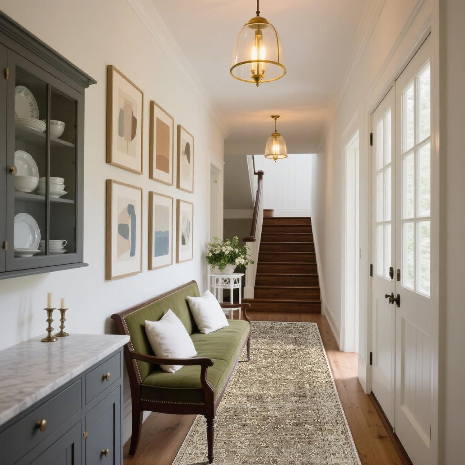 Machine Washable Kitchen Runner Rugs: 2'x6' Hallway Runner Rug Non Slip Low Pile Stain Resistant Soft Carpet Runners for Hallways Indoor Entryway Kitchen Laundry Room Beside Farmhouse(Brown and Grey)