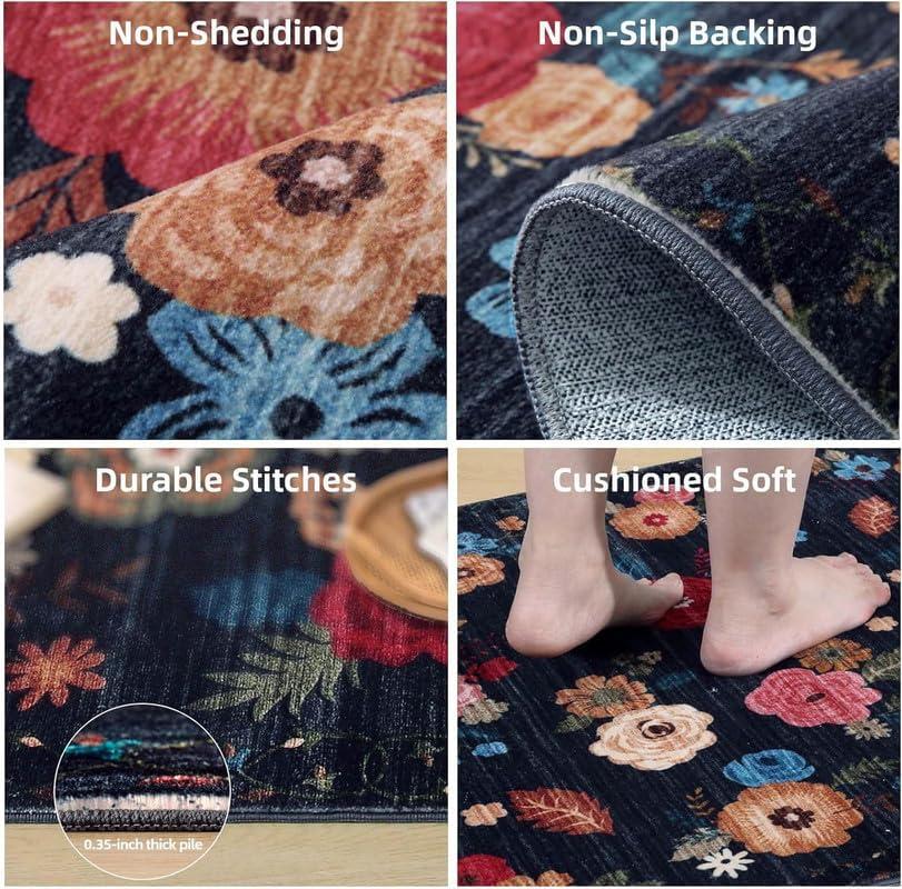 Machine Washable Runner Rug for Hallway: 2'6"x8' Kitchen Runners Rug with Rubber Backing Non Slip Stain Resistant Floral Floor Rug Soft Carpet Runners for Indoor Entryway Bedroom Bedside Living Room(Black Floral)