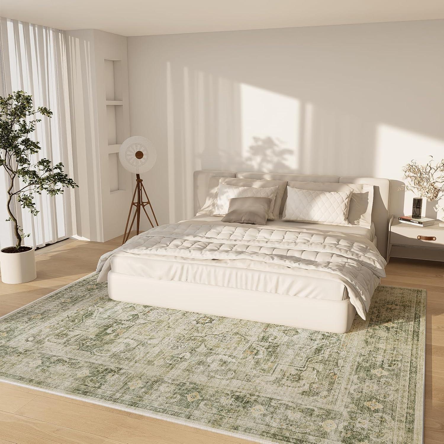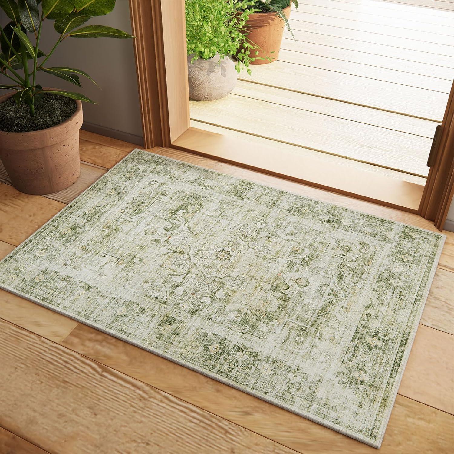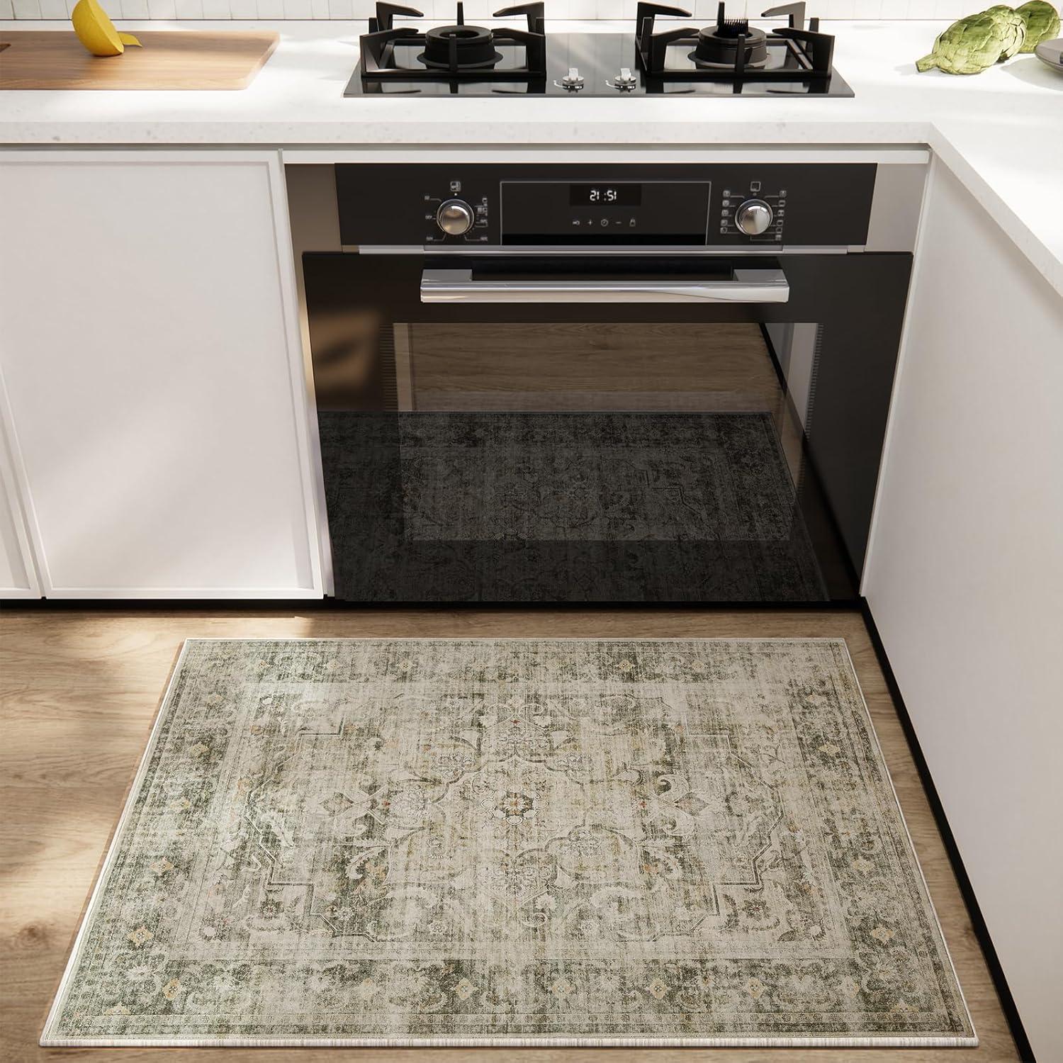 Machine Washable Runner Rug for Hallway: 2'6"x8' Kitchen Runners Rug with Rubber Backing Non Slip Stain Resistant Floral Floor Rug Soft Carpet Runners for Indoor Entryway Bedroom Bedside Living Room(Green)