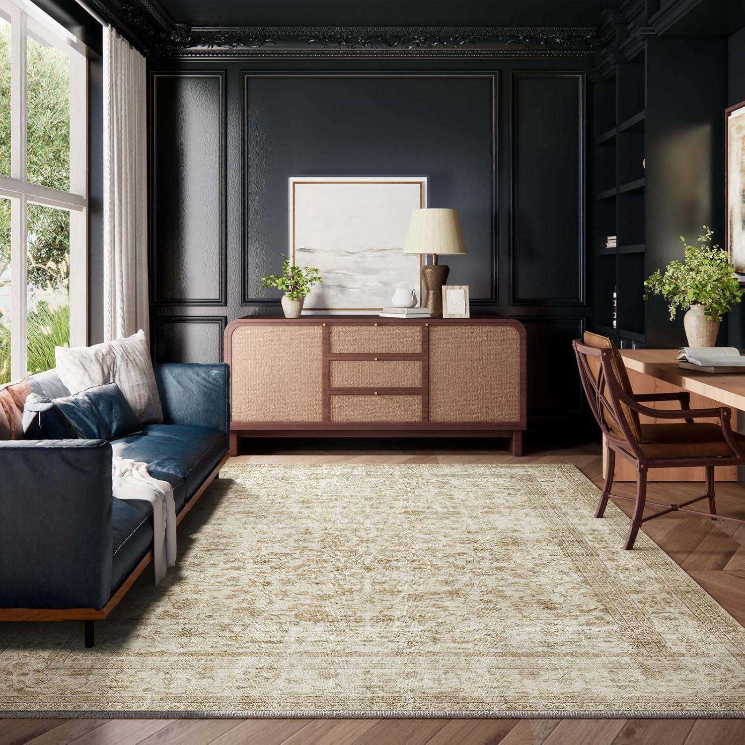 WASHABLE RUG: This is a fully machine washable area rug for extra convenience. machine wash this living room rug in cold water alone for a deeper clean. regular vacuuming and spot cleaning will keep the rug looking fresh while the colors stay vibrant and won't fade, perfect for busy households with kids and pets