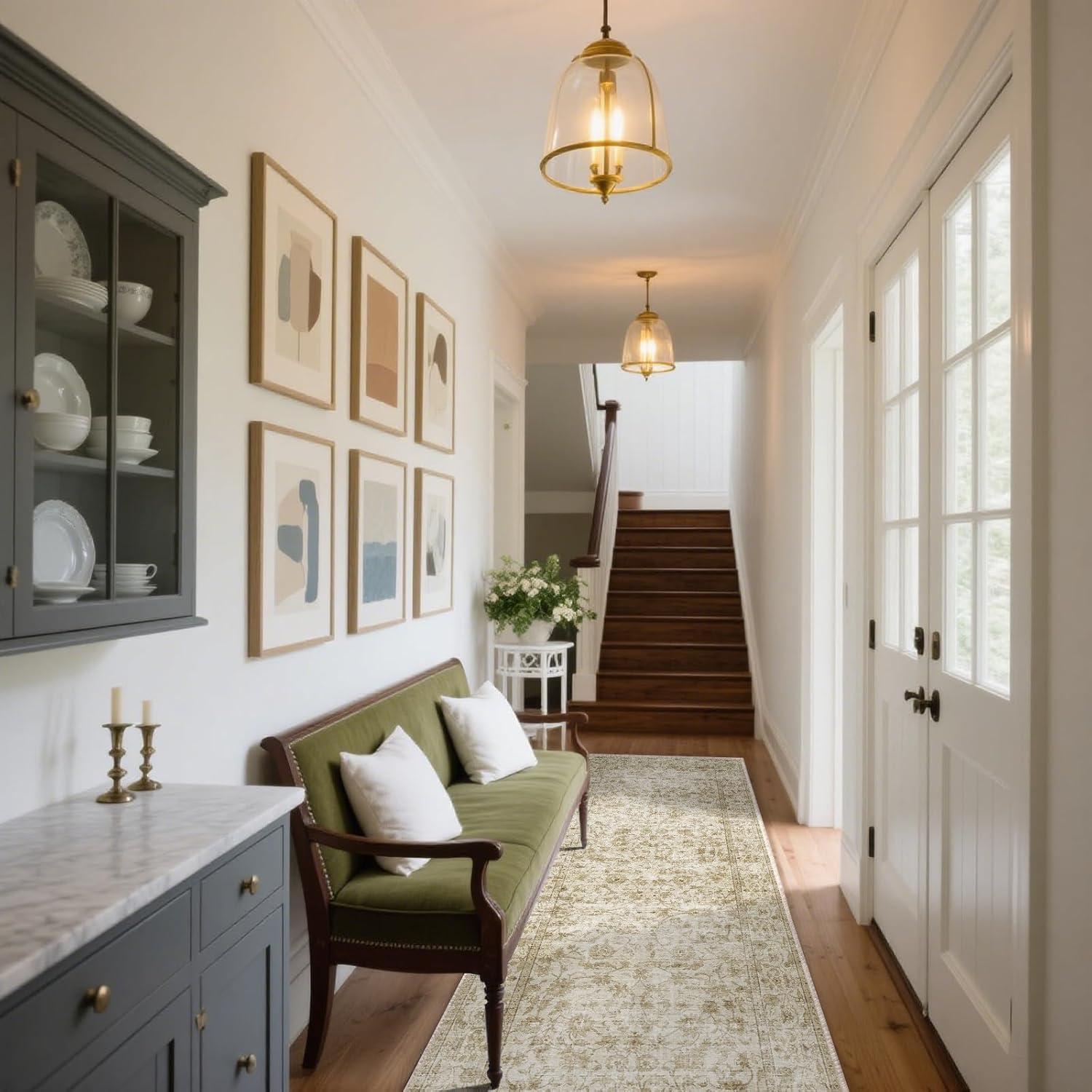 Hallways- TPR rubber backing runner rugs keeps it firmly in place without sliding around, even in high-traffic areas