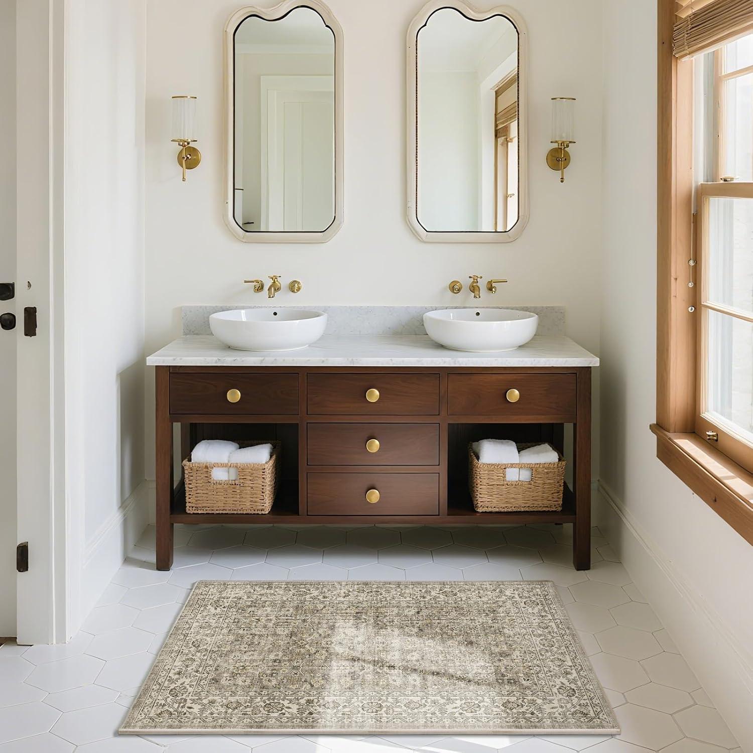 Machine Washable Throw Rugs for Entryway: Door Mat Indoor Entrance 4x6 Rug Small Area Rug Non Slip Low Pile Soft Kitchen Rugs for Front Door Indoor Entrance Entry Kids Room(Brown Grey Cream)