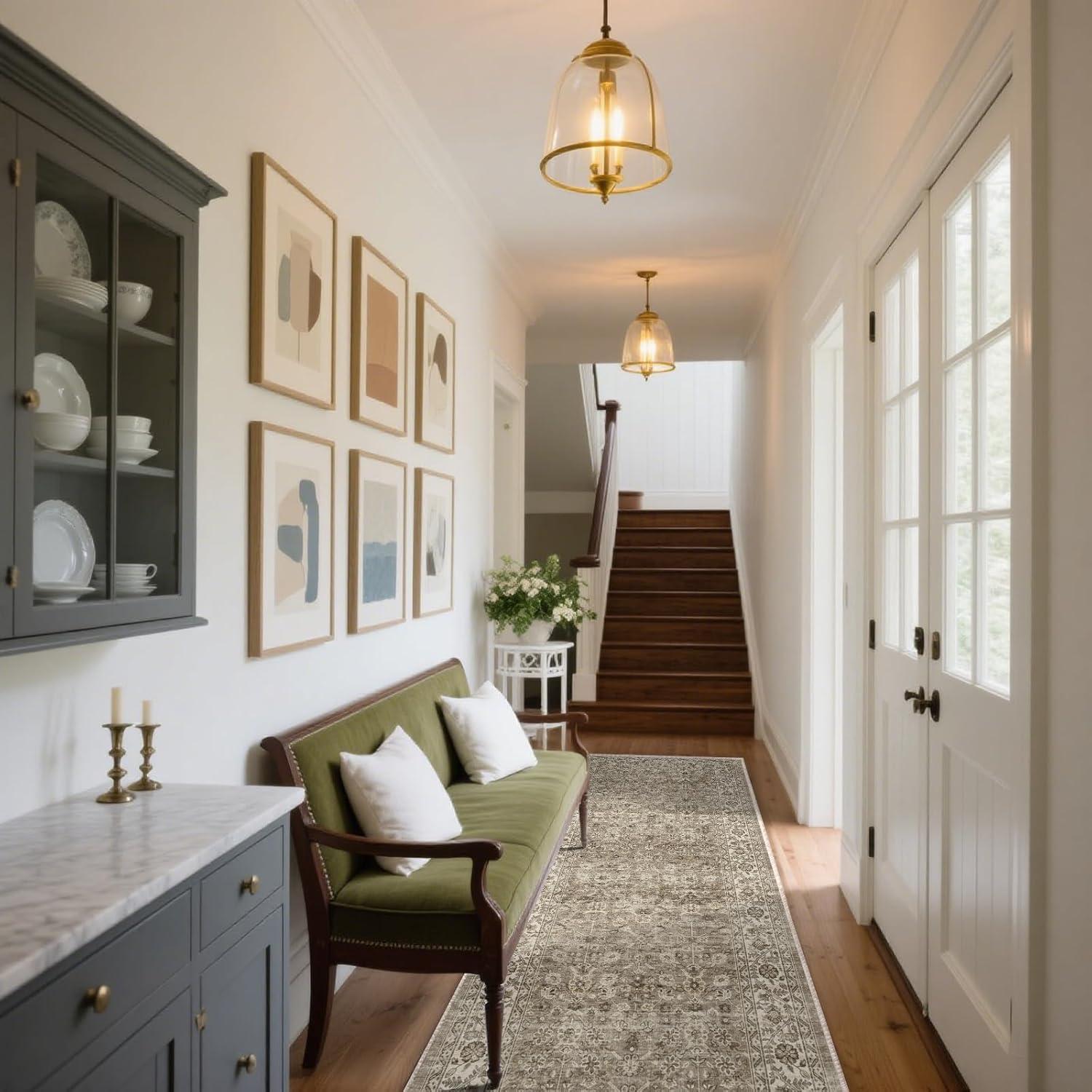 Hallways- TPR rubber backing runner rugs keeps it firmly in place without sliding around, even in high-traffic areas