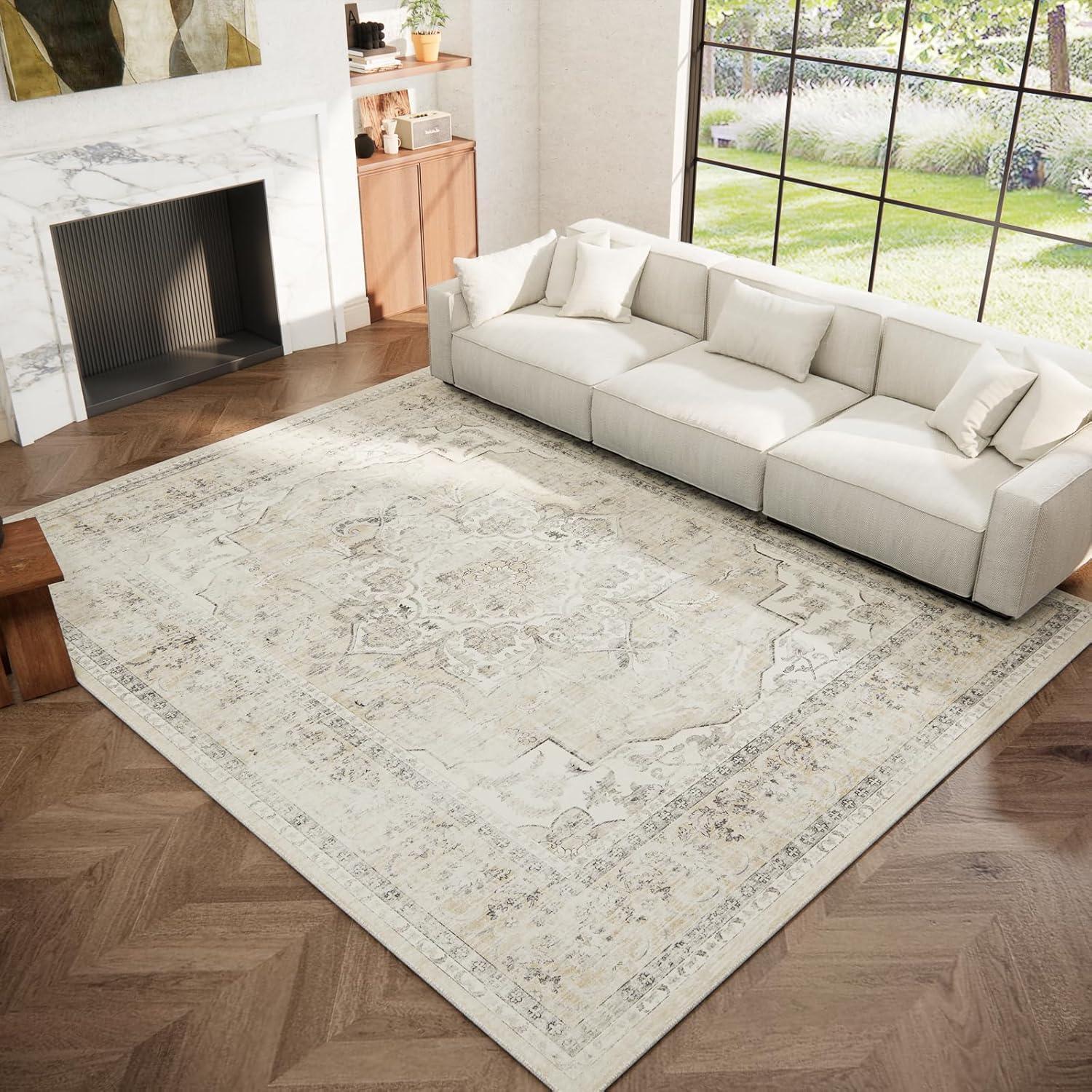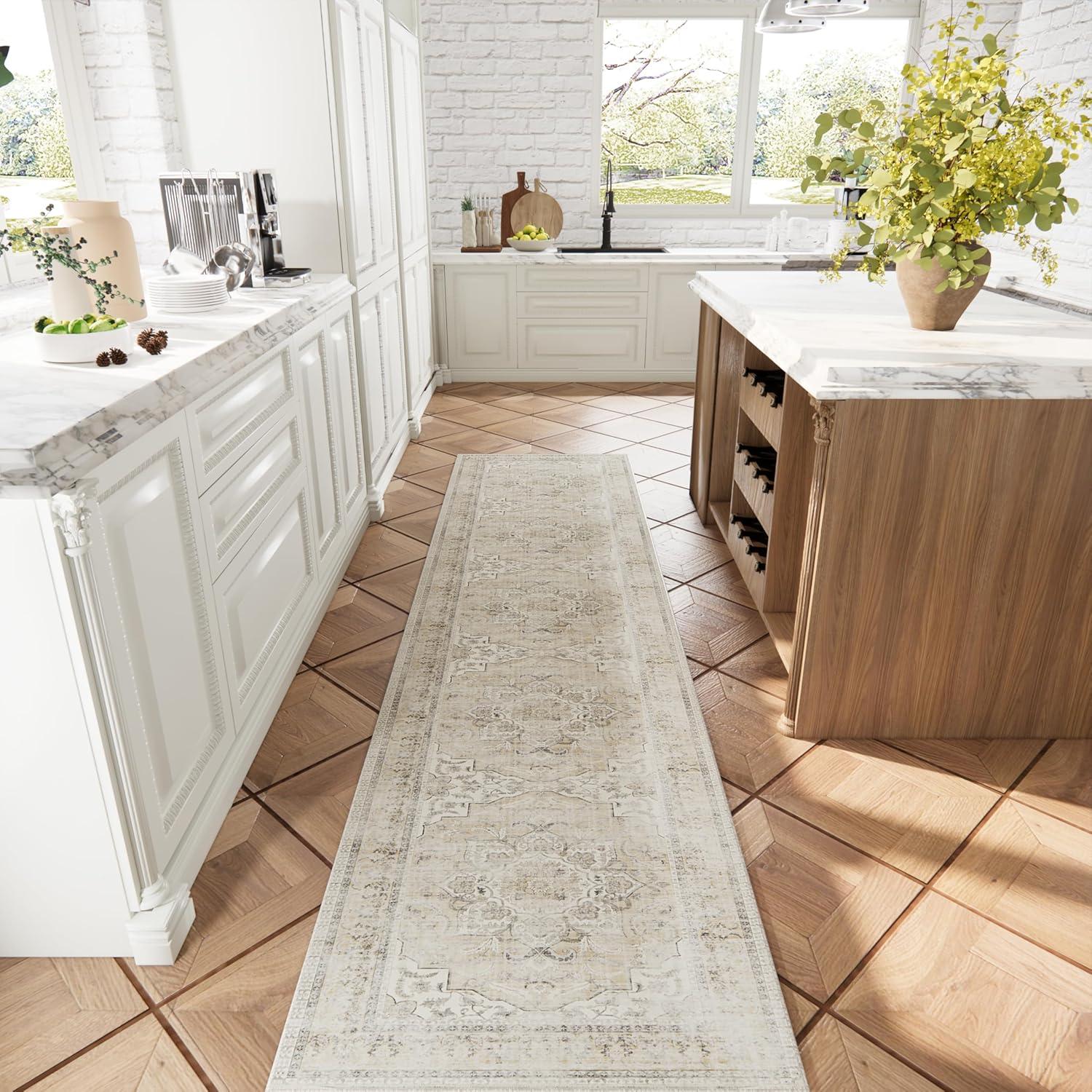 Washable Kitchen Rugs Non Slip: 2’x6′ Hallway Runner Rug Stain Resistant Low Pile Floral Floor Rug with Rubber Backing Non Shedding Soft Carpet Runners for Indoor Entryway Bedside Bedroom Farmhouse(Beige Floral)