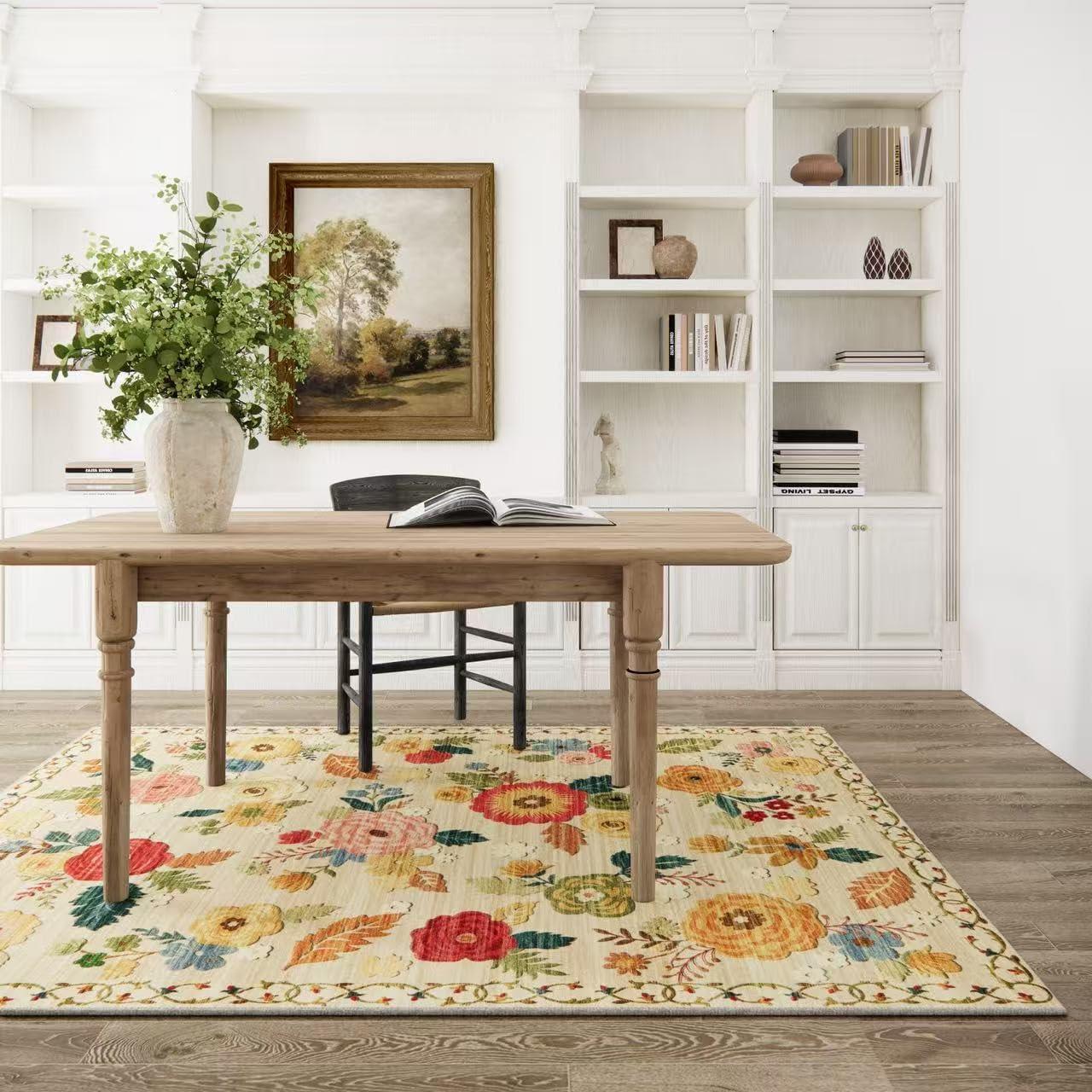 imageWashable Kitchen Rugs Non Slip 2x6 Hallway Runner Rug Stain Resistant Low Pile Floral Floor Rug with Rubber Backing Non Shedding Soft Carpet Runners for Indoor Entryway Bedside Bedroom FarmhouseBeige Floral