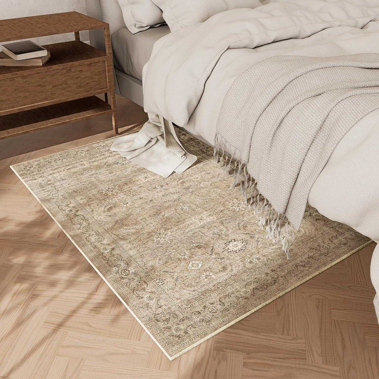 Washable Kitchen Rugs Non Slip: 2'x6' Hallway Runner Rug Stain Resistant Low Pile Floral Floor Rug with Rubber Backing Non Shedding Soft Carpet Runners for Indoor Entryway Bedside Bedroom Farmhouse(Brown and Beige)