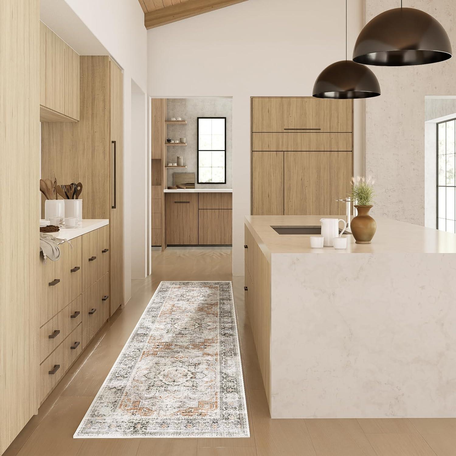 WASHABLE RUNNER RUG: This is a fully machine washable runner rug for extra convenience. machine wash this kitchen runner rug in cold water alone for a deeper clean. regular vacuuming and spot cleaning will keep the runner rug looking fresh while the colors stay vibrant and won't fade, perfect for busy households with kids and pets