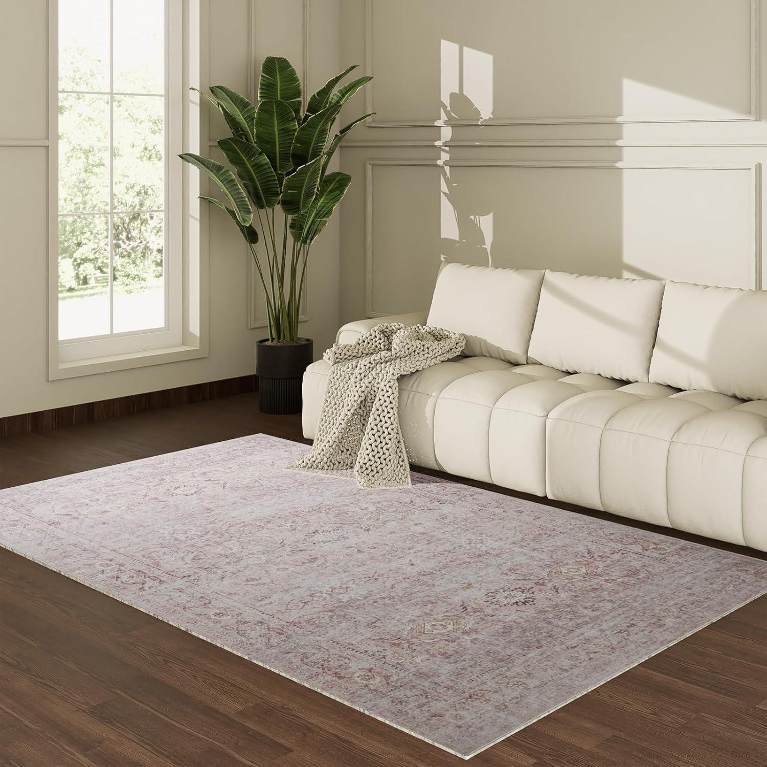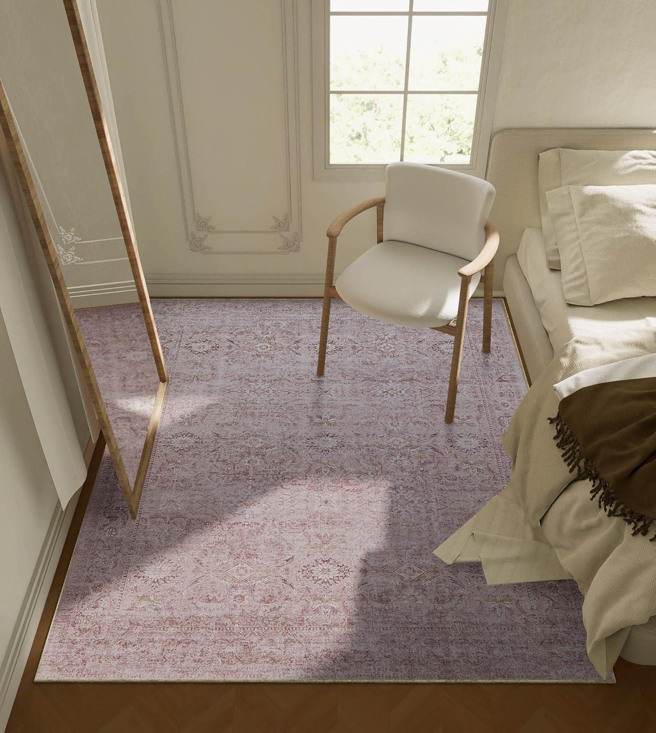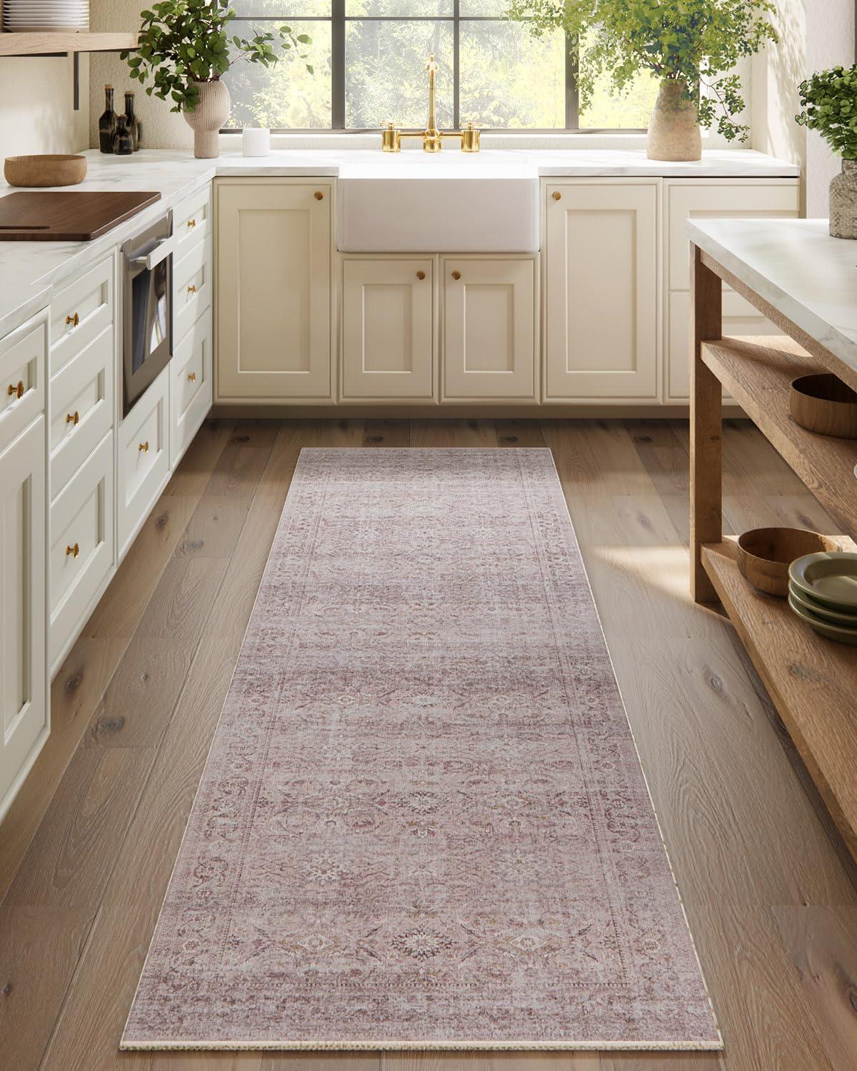 Washable Kitchen Rugs Non Slip: 2’x6′ Hallway Runner Rug Stain Resistant Low Pile Floral Floor Rug with Rubber Backing Non Shedding Soft Carpet Runners for Indoor Entryway Bedside Bedroom Farmhouse(Pink)