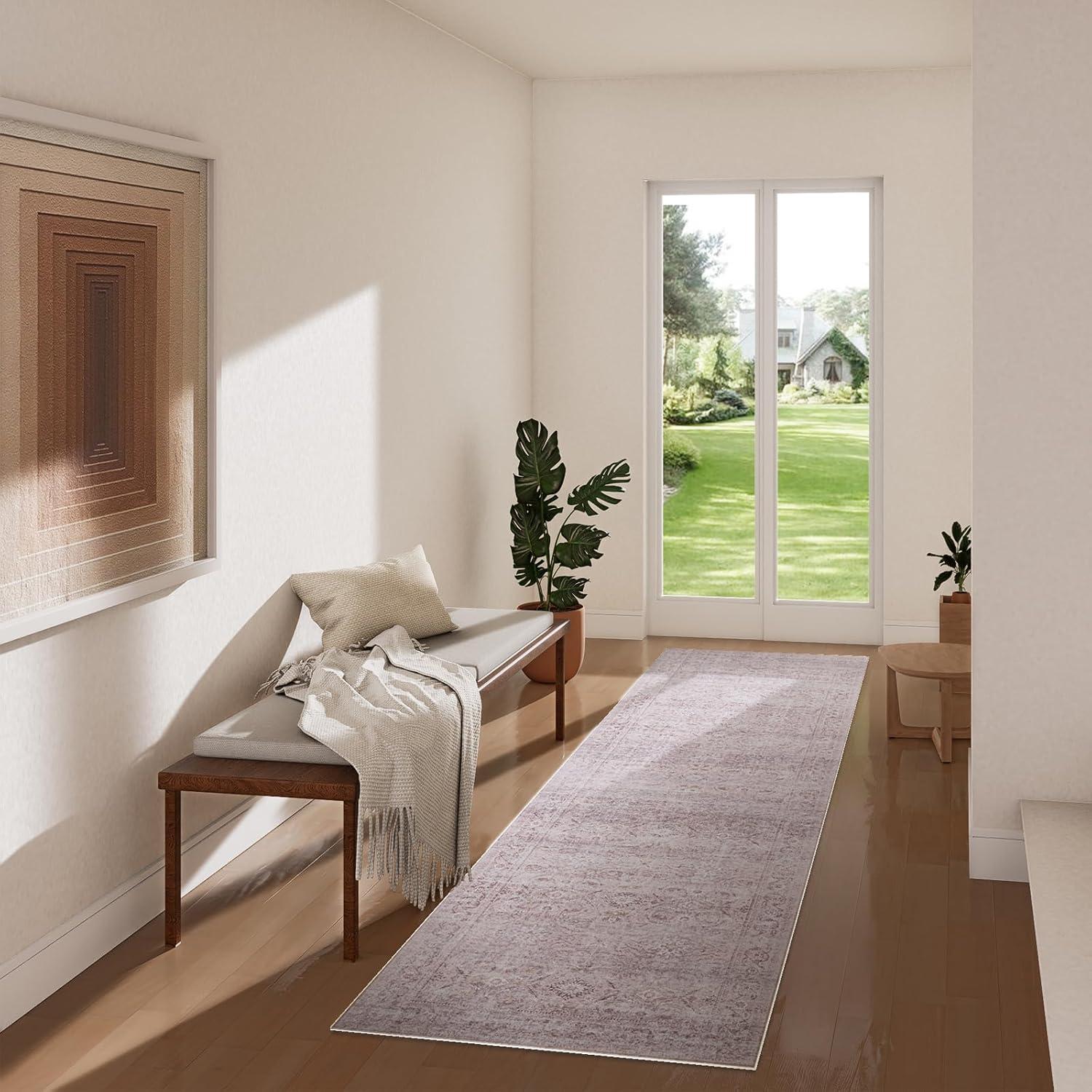 Washable Kitchen Rugs Non Slip: 2'x6' Hallway Runner Rug Stain Resistant Low Pile Floral Floor Rug with Rubber Backing Non Shedding Soft Carpet Runners for Indoor Entryway Bedside Bedroom Farmhouse(Pink)