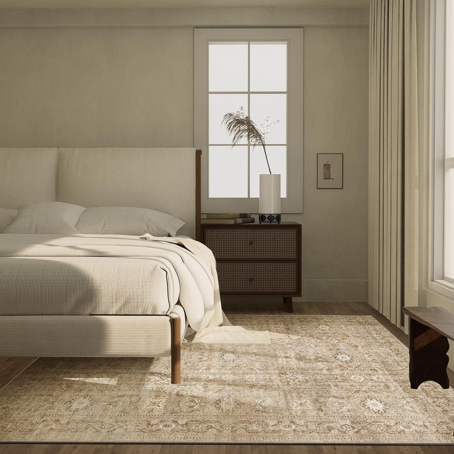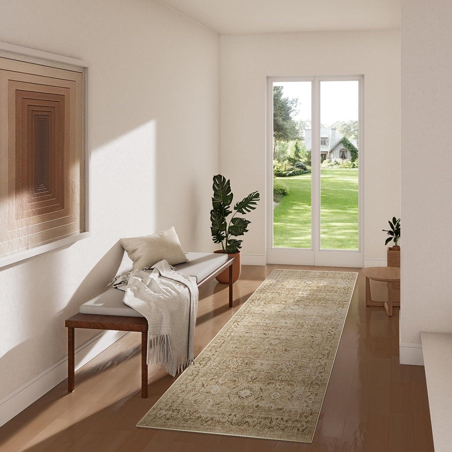 Washable Small Entryway Area Rugs: 2'x3' Floral Rug Non Slip Door Mat Indoor Entrance Stain Resistance Low Pile Throw Rugs for Inside Front Door Floor Bedroom Bedside Kitchen Nursery Dorm Home Entry(Brown and Beige)