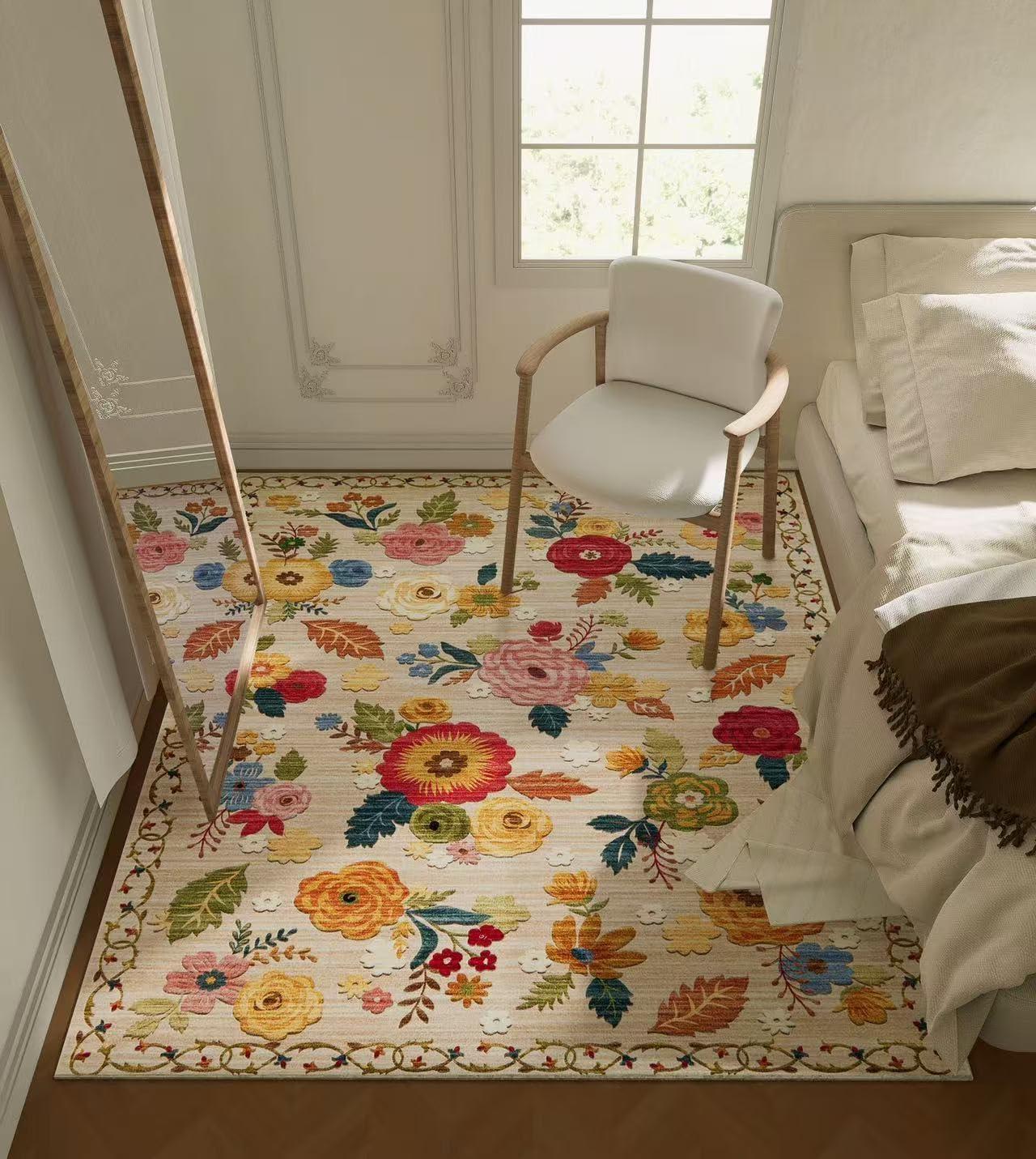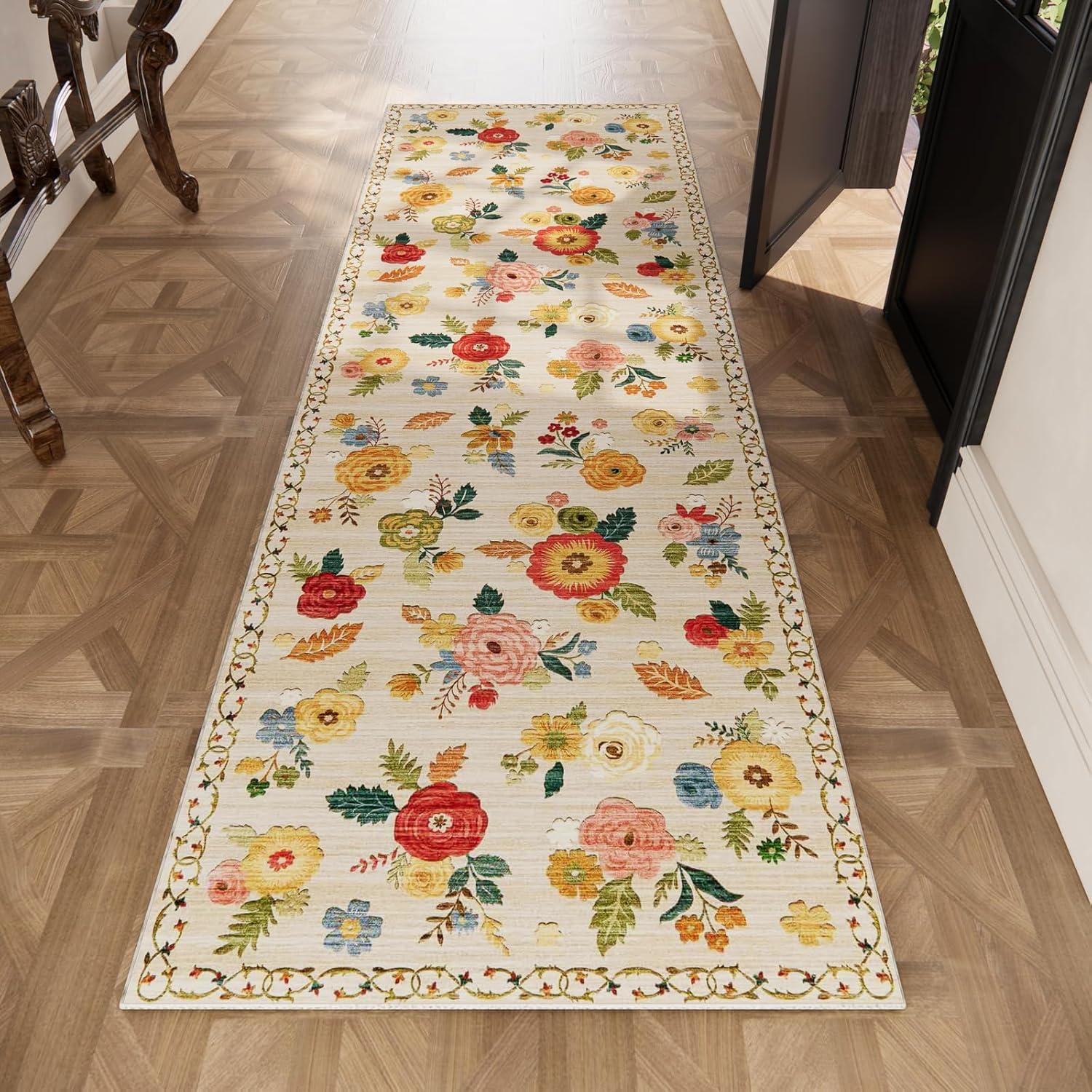 Washable Small Entryway Area Rugs: 2’x3′ Floral Rug Non Slip Door Mat Indoor Entrance Stain Resistance Low Pile Throw Rugs for Inside Front Door Floor Bedroom Bedside Kitchen Nursery Dorm Home Entry(Beige Floral)