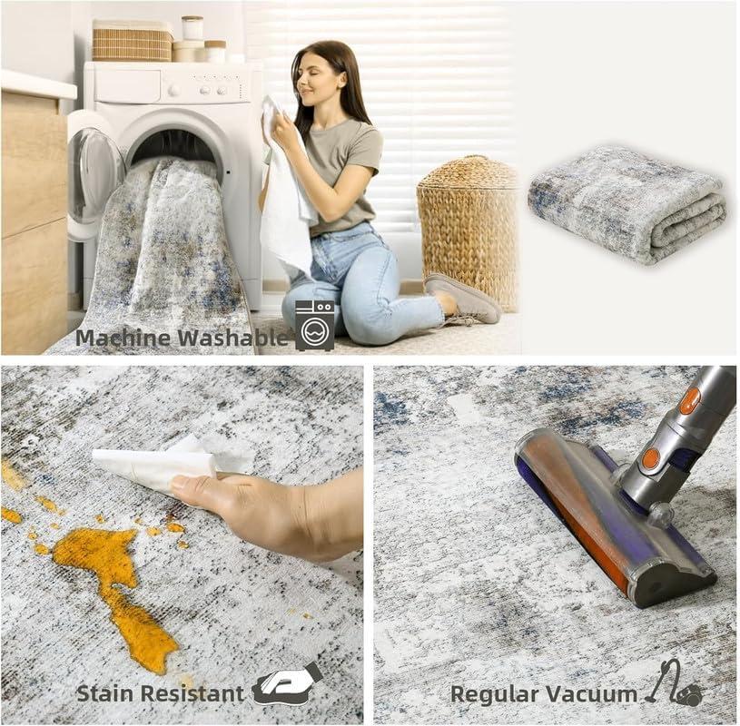 STAIN-RESISTANT RUG: This rug uses stain-resistant technology to protect the floor underneath, so you never have to worry about accidental spills again. As long as it does not contain any pigments, the liquid will stay on the surface of the rug without penetrating into the fabric, You can simply wipe it off