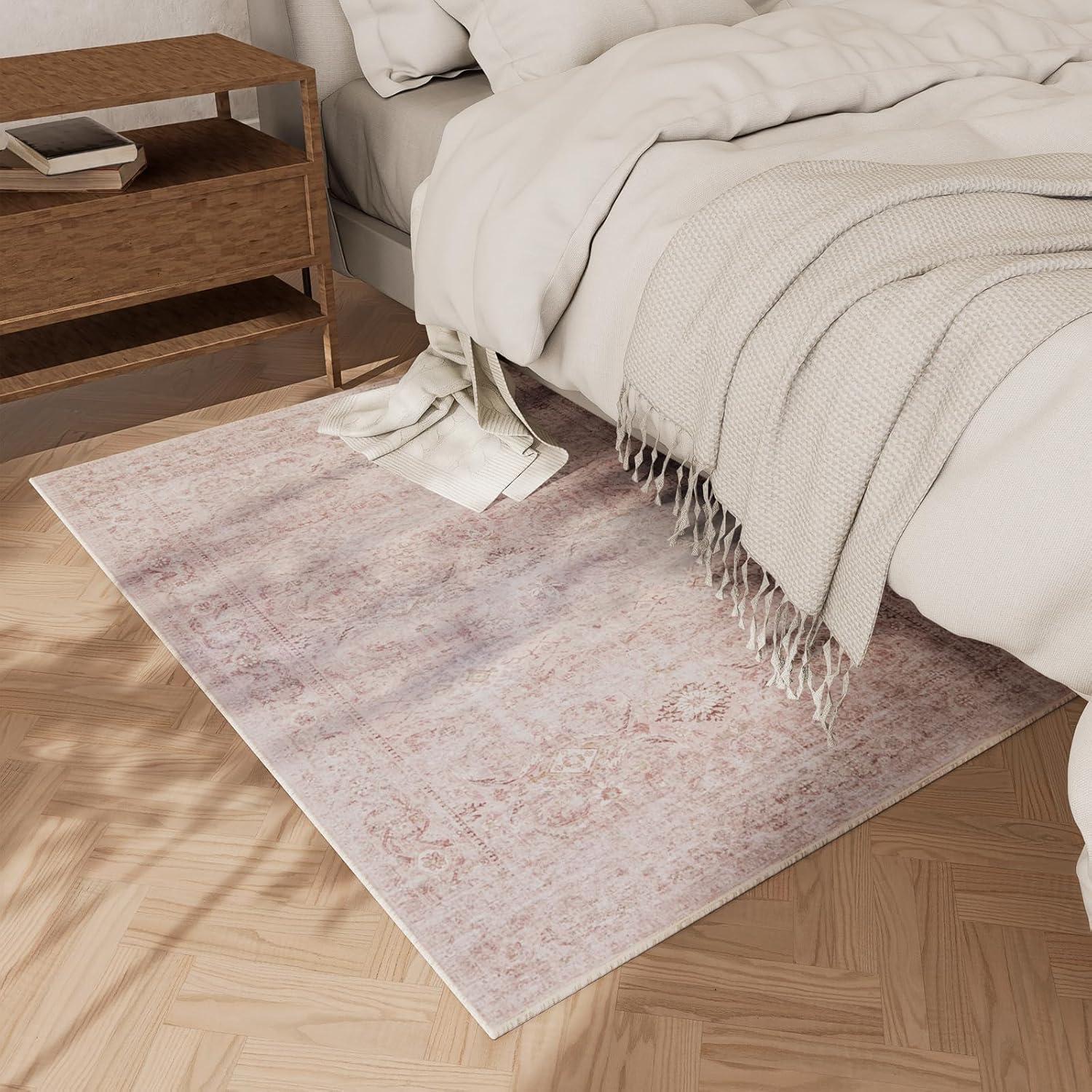 Washable Small Entryway Area Rugs: 2'x3' Floral Rug Non Slip Door Mat Indoor Entrance Stain Resistance Low Pile Throw Rugs for Inside Front Door Floor Bedroom Bedside Kitchen Nursery Dorm Home Entry(Pink)